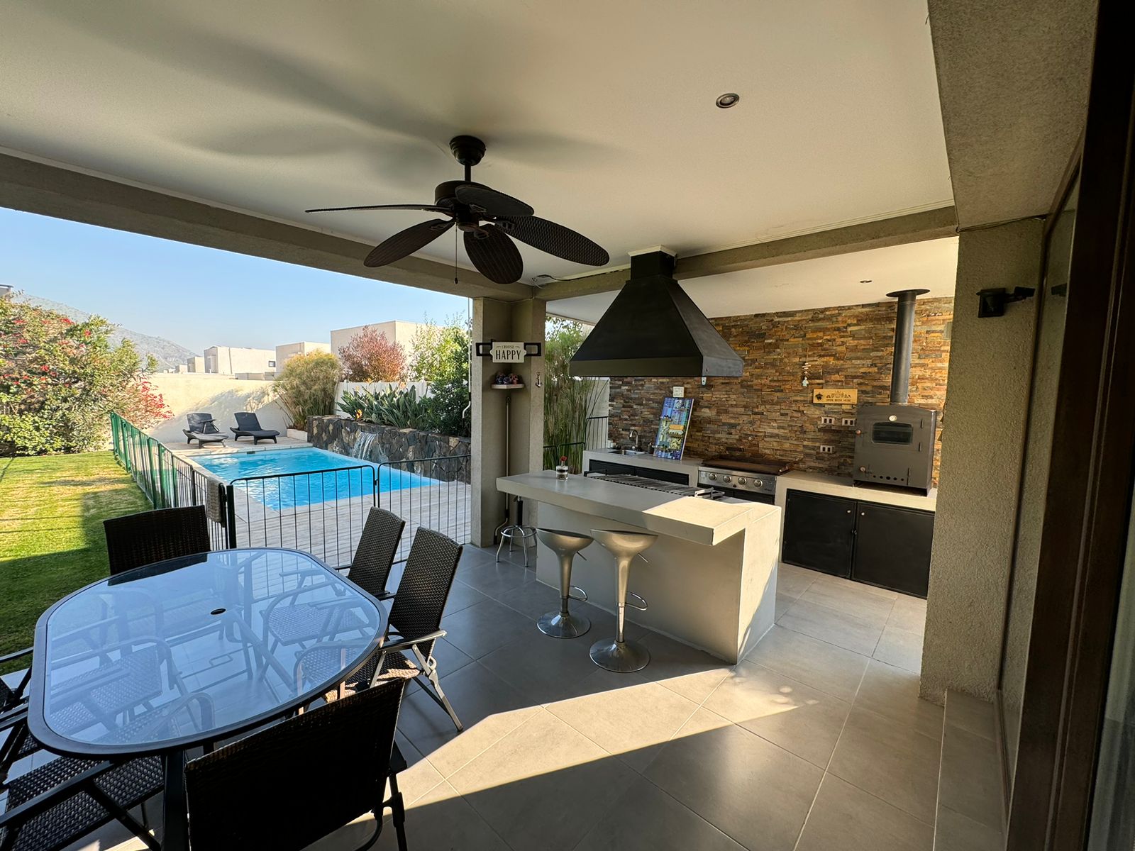 Espectacular quincho con parrilla, horno a leña, lavaplatos, y muebles, el cual también tiene un acceso por la cocina.