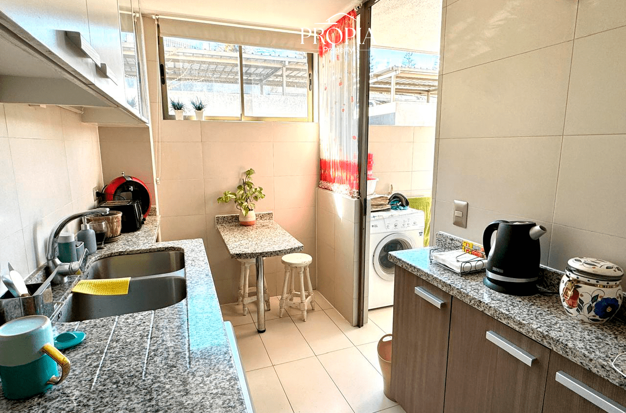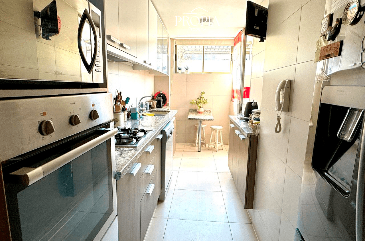 La cocina tiene piso de porcelanato, cubierta de granito. Comedor de diario muy luminoso.