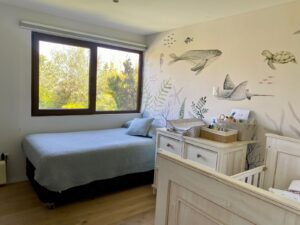 La piscina es grande y tiene una gran área verde ideal para que los niños jueguen.
